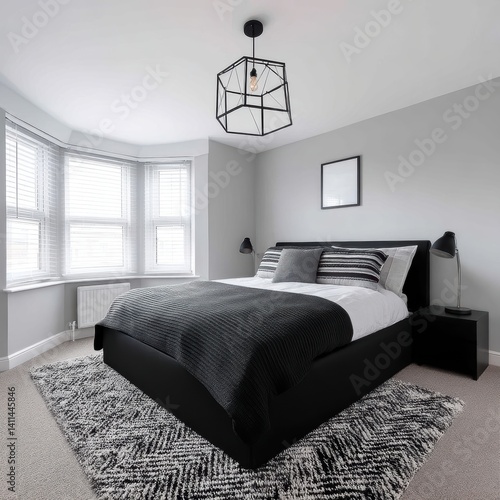 Modern double divan bed in a bright bedroom with neutral walls and plenty of room for movement - clean treatment decor relaxation