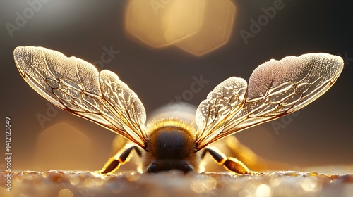 Close up shot of a single honeybee s delicate transparent wings showcasing the intricate network of veins and patterns