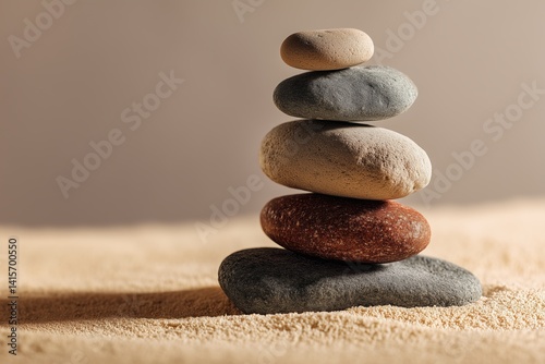Ausgewogene Steinformation auf Sand mit weichem Licht