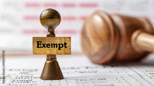 Golden tax exempt stamp pressed on official document with copy space, financial approval concept, government tax relief policy and legal exemption certification for business.