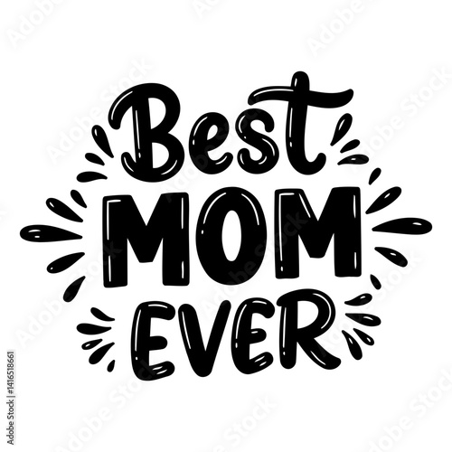 Bold, playful typography declares Best Mom Ever in a fun, hand-drawn style. Perfect for Mother's Day cards, apparel, or home decor. Ideal for advertising, social media, and editorial use.
