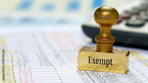 Golden tax exempt stamp pressed on official document with copy space, financial approval concept, government tax relief policy and legal exemption certification for business.