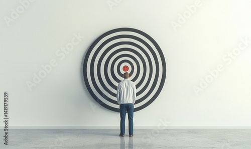 Man Faced with Large Target on Wall for Concept of Goals and Focus