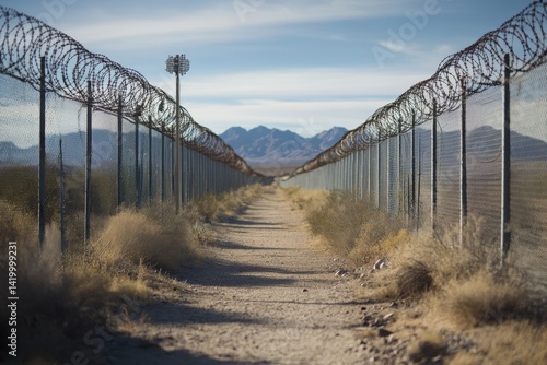 Fence line separating two regions under a clear sky in a remote desert landscape