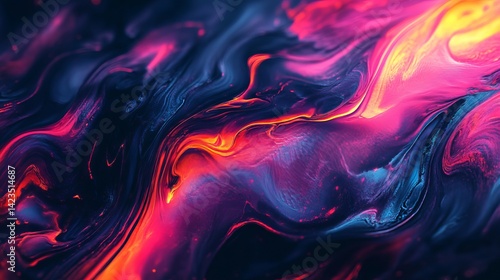 Abstract swirling liquid paint texture background vivid colors design red art pink blue dark fluid