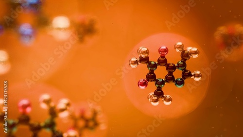 Highly detailed molecular structure of caffeine molecule with visible atomic bonds and color-coded atoms conceptual 3D render for chemistry and biochemistry visualization