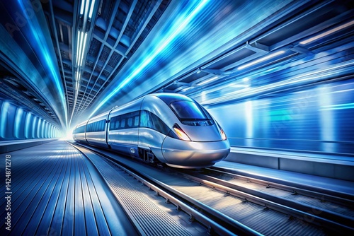 Futuristic High-Speed Blue Train Emerging from Tunnel - Modern Express Transportation Concept