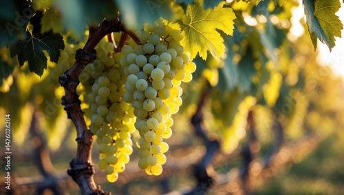 White Grapes on the Vine in Wachau Valley for Ice Wine Production