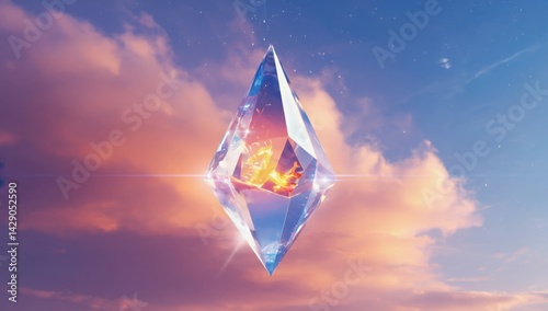Mythical dragon tear crystallizing into rare gemstone against a breathtaking sky