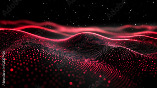Abstract digital wave of particles flows across a dark background, symbolizing futuristic technology, data movement, AI intelligence, and the interconnected fabric of modern communication systems.