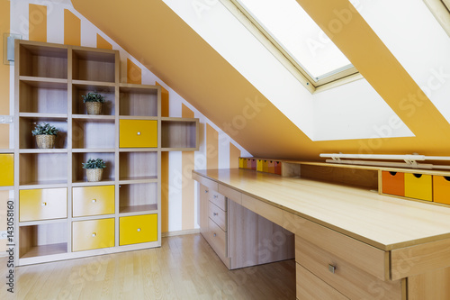 Yellow office room in an attic