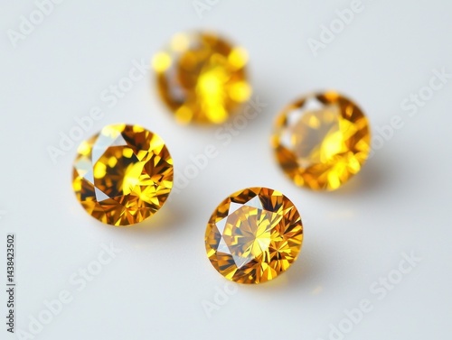 Brilliant Yellow Gems Sparkling on a White Background