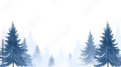 Misty blue evergreen forest scene, serene and tranquil winter landscape
