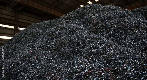 Metal Swarf Pile in Industrial Setting for Recycling