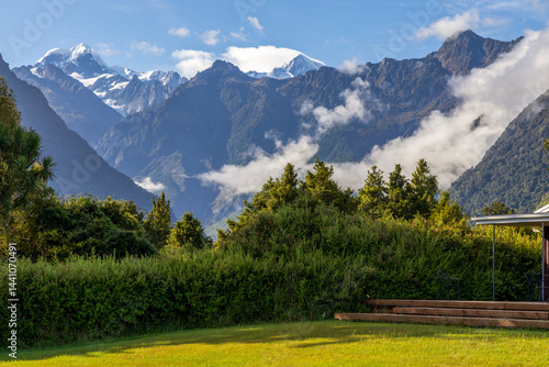 Southern Alps and Fox Glacier Distance View, South Island New Zealand
