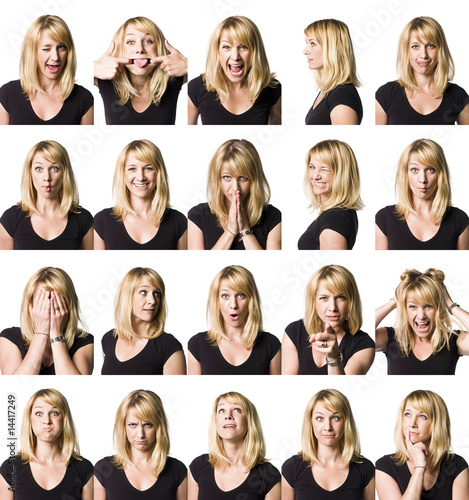 Twenty portrait of a woman with differnet expressions