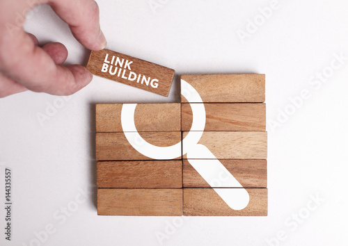 Business, Technology, Internet and network concept. Young businessman shows the word: Link building