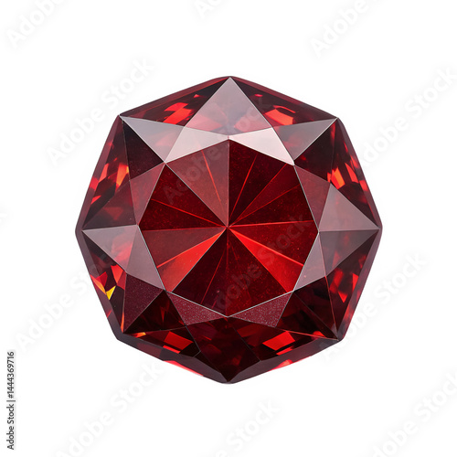 A single deep red garnet gemstone viewed from directly above, highlighting its rich color and clarity