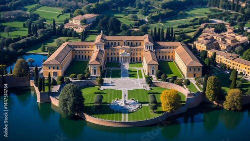 Aerial view of papal palace overlooking lake albano