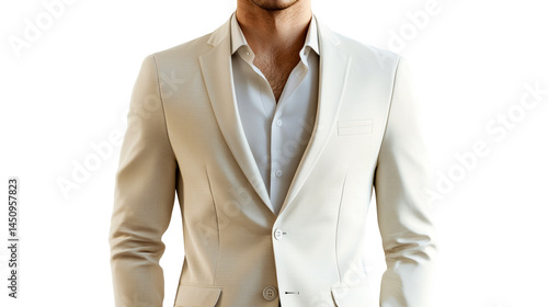 Man's Cream Blazer with Unbuttoned Shirt, cut out transparent