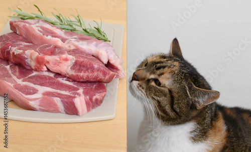Kot wącha surowe mięso, dieta i odzywiamie kotów