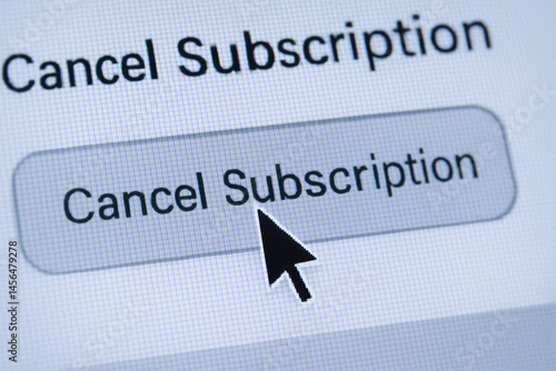 Termination concept with cursor clicking on cancel subscription button on digital screen representing end of service agreement