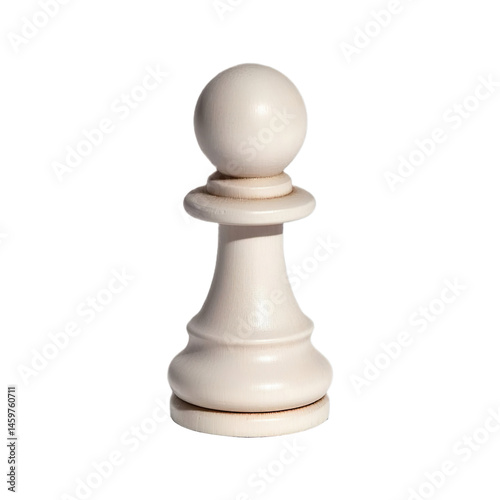 Photorealistic white chess pawn piece, signifying potential, growth, and foundational strength, isolated on a transparent background