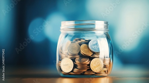Financial Savings: A Glass Jar Filled with Coins Represents Financial Security and Wealth Accumulation