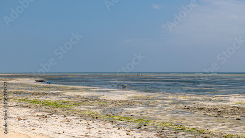 stare katamarany rybaków stojące na mieliźnie podczas odpływu oceanu