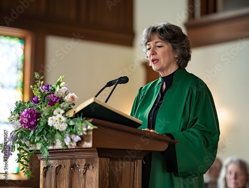 Methodist minister delivers a sermon during a female empowerment service in a church setting