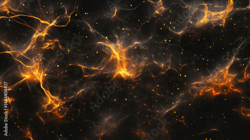 Abstract cosmic nebula with glowing orange and gold filaments and sparkling stars creating a deep space visual effect suitable for science fiction designs