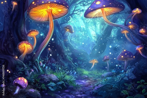 Fantasy realm with a mystical atmosphere and glowing elements.