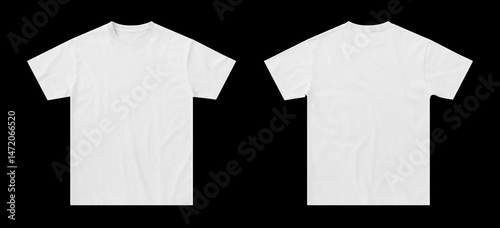 white t shirt regular fit isolated on black background, tshirt photo for mockup, blank tshirt