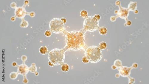 3D rendering of a luminous collagen peptide molecule, showcasing its intricate structure and scientific significance in health and beauty applications.