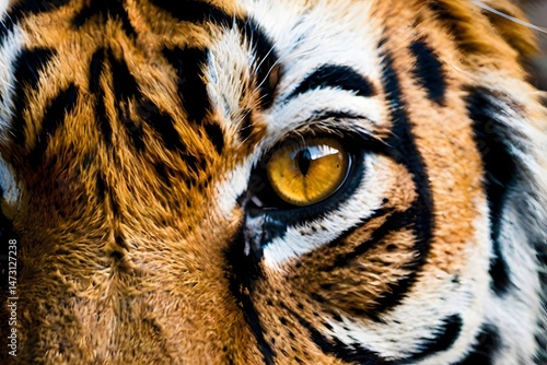 The close-up on a Tiger s face monochrome portrait with akcent on yellow eyes.
