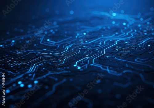 Abstract blue background with glowing circuit board pattern suggesting technology and connectivity