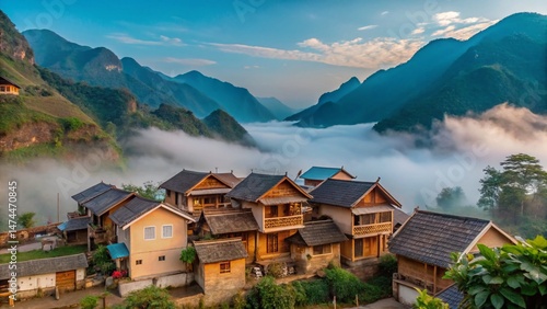 Candid Photo: Ha Giang Valley Houses Nestled in Mountains
