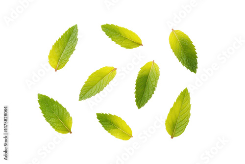 Mint vibrant leafy cluster centred bright flatlay isolated on transparent background