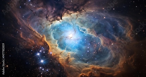Stunning Celestial Nebula Cosmic Cloudscape with Bright Stars and Glowing Gas