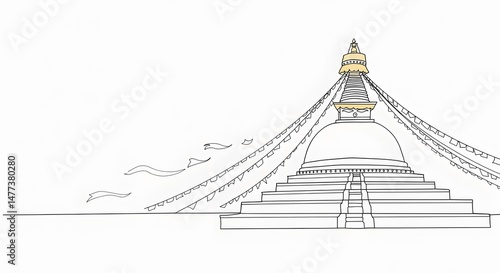 Stupa with Prayer Flags Illustration