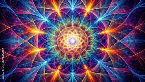 Vibrant Abstract Mandala with Intricate Colorful Energy Flows and Symmetrical Design Elements