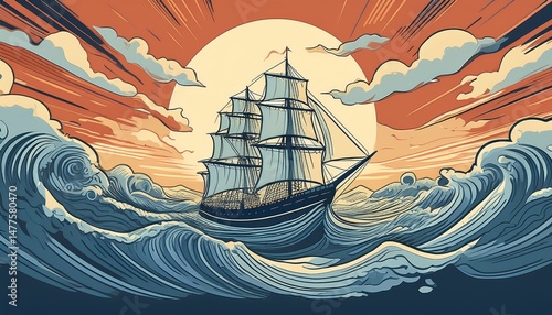 ship sailing through rough waters representing the stoic concept of enduring through life challenges