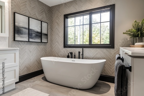 Modern bathroom with a herringbone pattern
