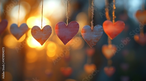 Romantic Heart Cutouts Gently Swaying in Warm Evening Light