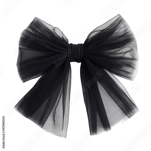 A Large Black Tulle Bow Isolated On A Transparent Background The Bow Is Made Of Soft And Delicate Tulle And Has A Classic And Elegant Design