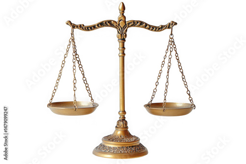 Golden scales of justice isolated on transparent background