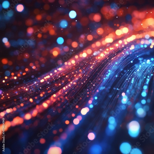 Bright orange and blue lights appear as small spheres in a flowing, wavy pattern.