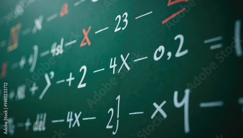 Close-up shot of various mathematical symbols written on a chalkboard , learning, exponent, pi