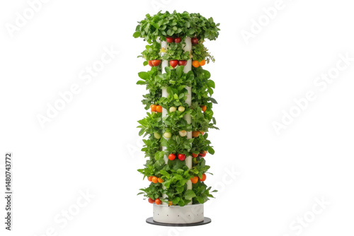 PNG Vertical hydroponic tower garden with fresh vegetables and lush greenery