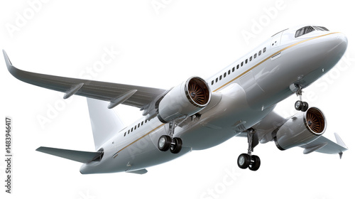 Soaring Passenger Jet: A modern passenger jet takes flight, its sleek fuselage gleaming against the sky, embodying the essence of travel and technological marvel.
